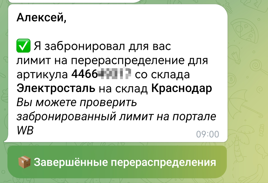 Также в одну подписку с перераспределением в наш бот входит автобронирование слотов на приемку по схеме FBW, но об этом в другой статье😊