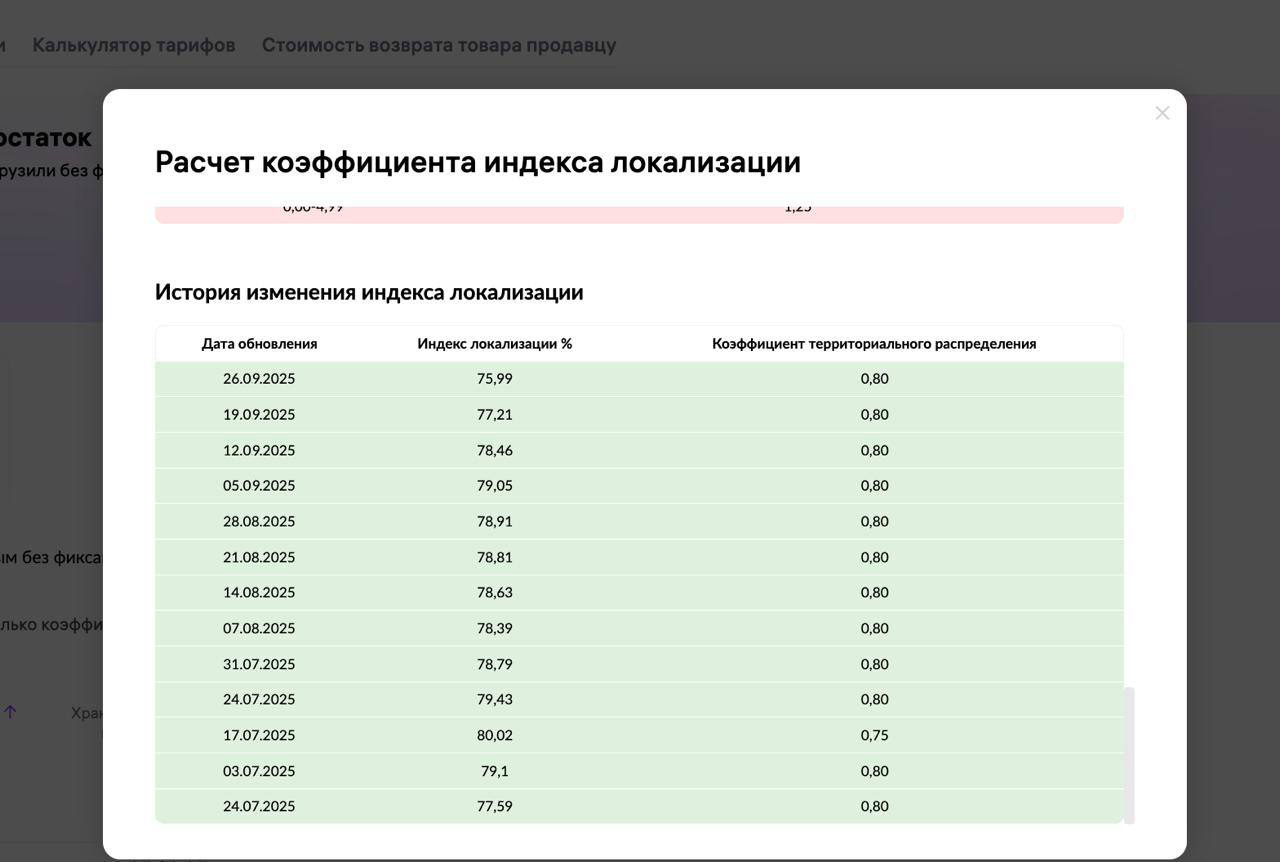 Несмотря на трудную доступность большинства складов в последнее время, у нас получается держать коэффициент территориального распределения на уровне 0,8 и получать скидку 20% на Хранение и Логистику. А также платить за логистику в ближайшие 2 месяца по самому низкому тарифу